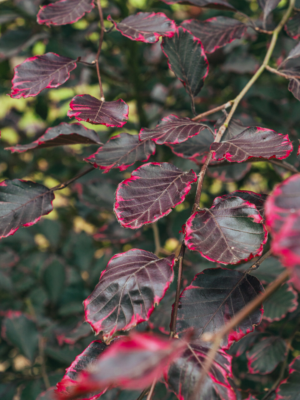Bladene til Fagus sylvatica 'Purpurea Tricolor' blir rød om høsten.