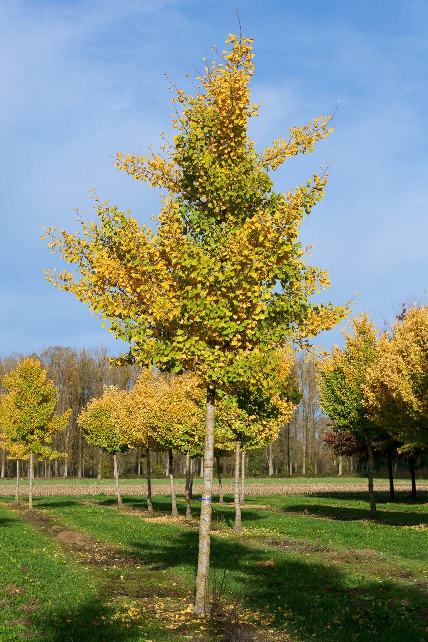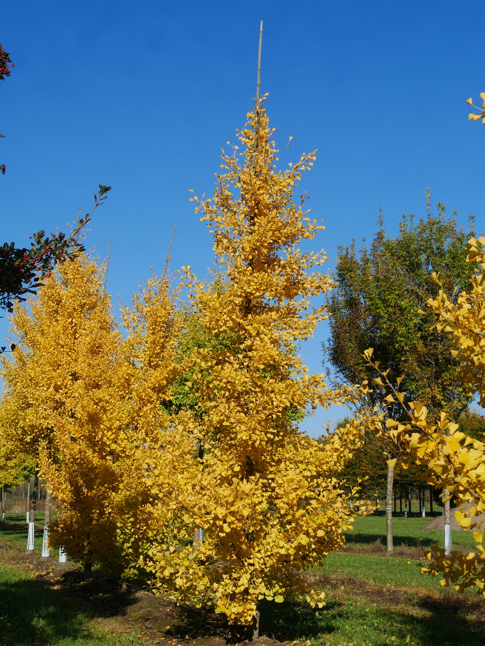 Bladene til Ginkgo biloba 'Autumn Gold' blir gul om høsten.