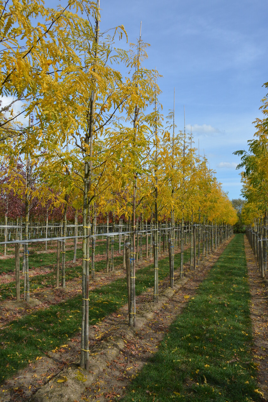 Bladene til Gleditsia triacanthos STREET KEEPER ('Draves') blir gul om høsten.