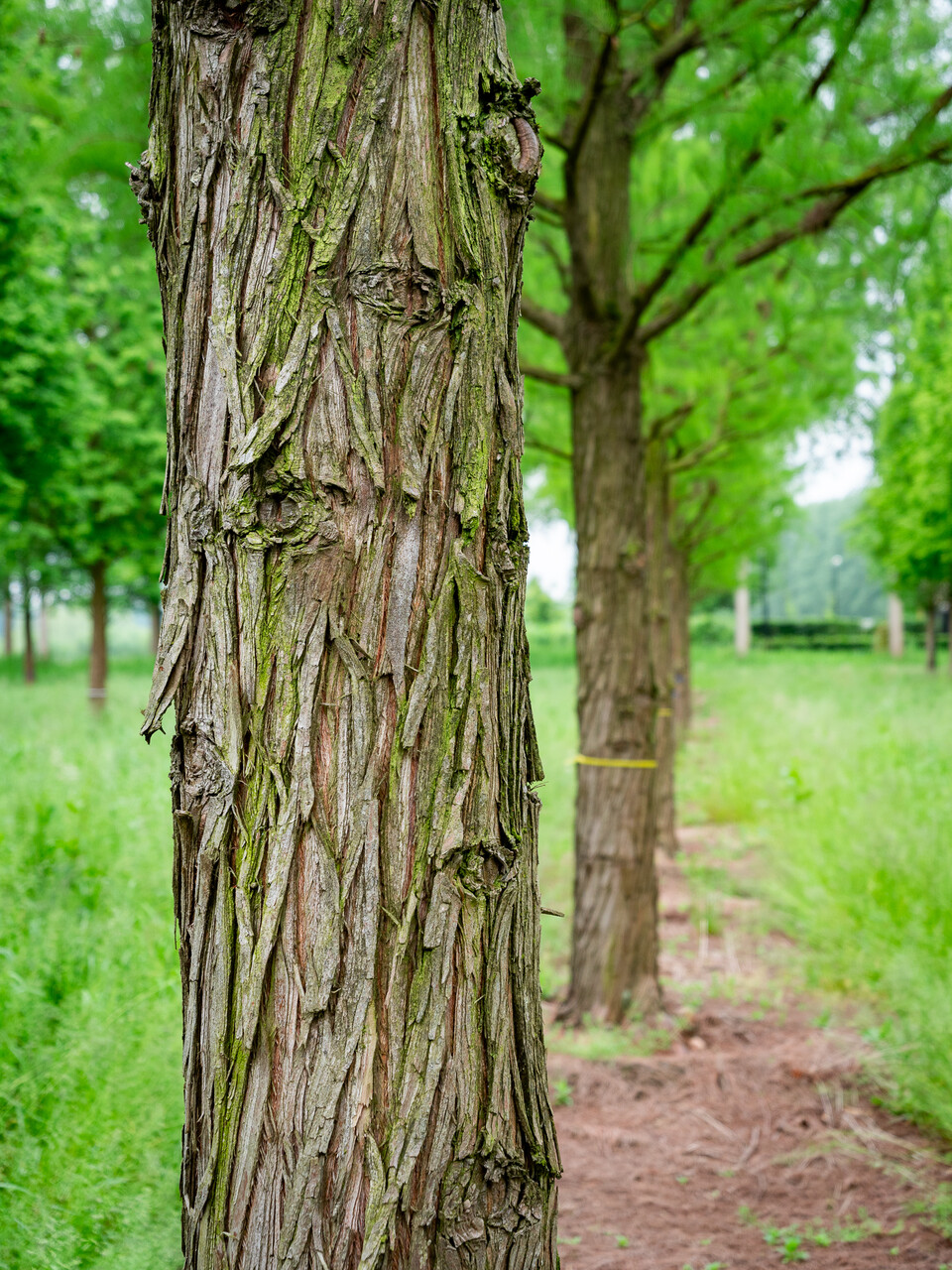 Bladene til Taxodium distichum 'Nutans' blir oransje, rød om høsten.