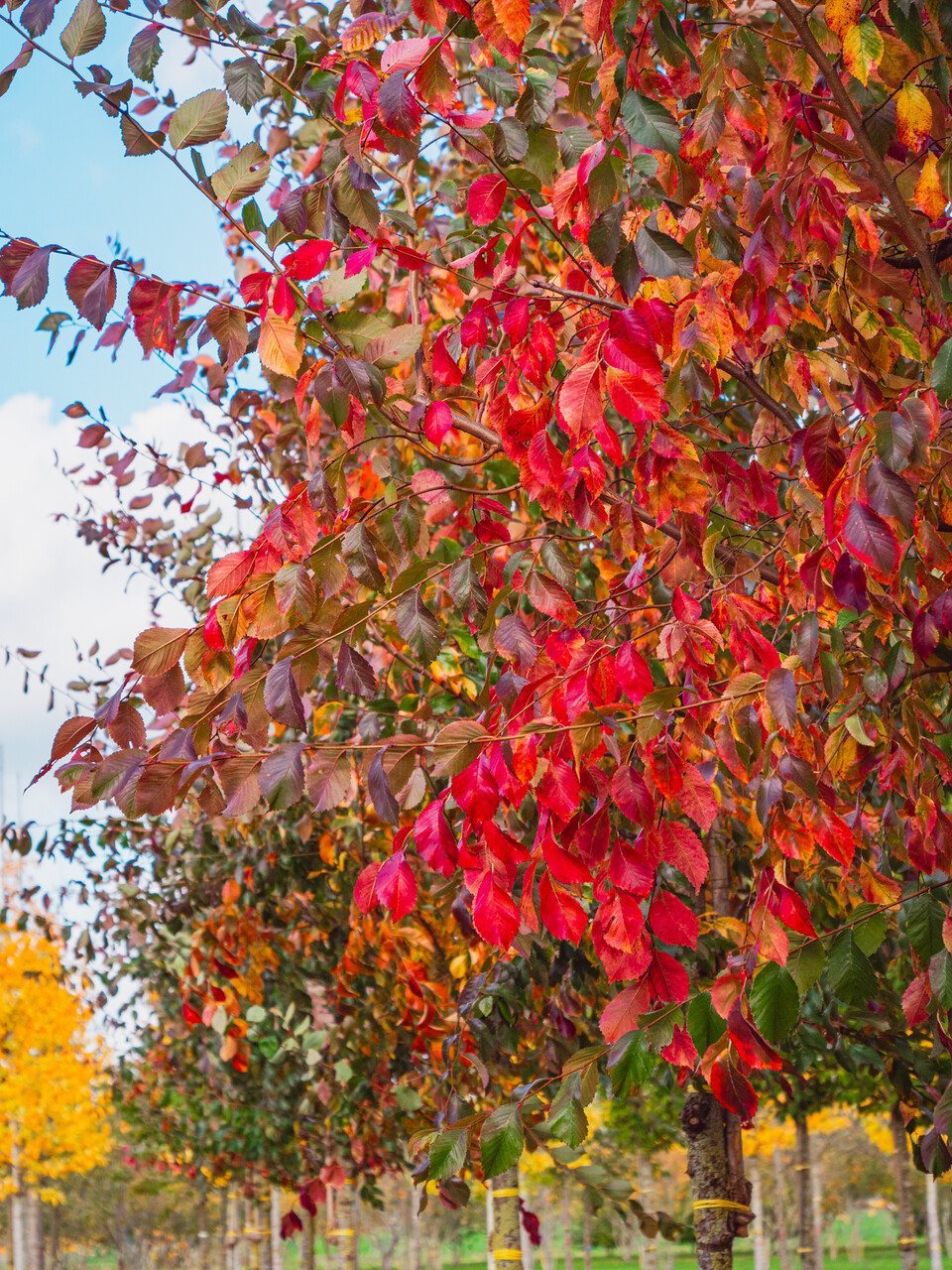 Bladene til Ulmus 'Frontier' blir rød om høsten.