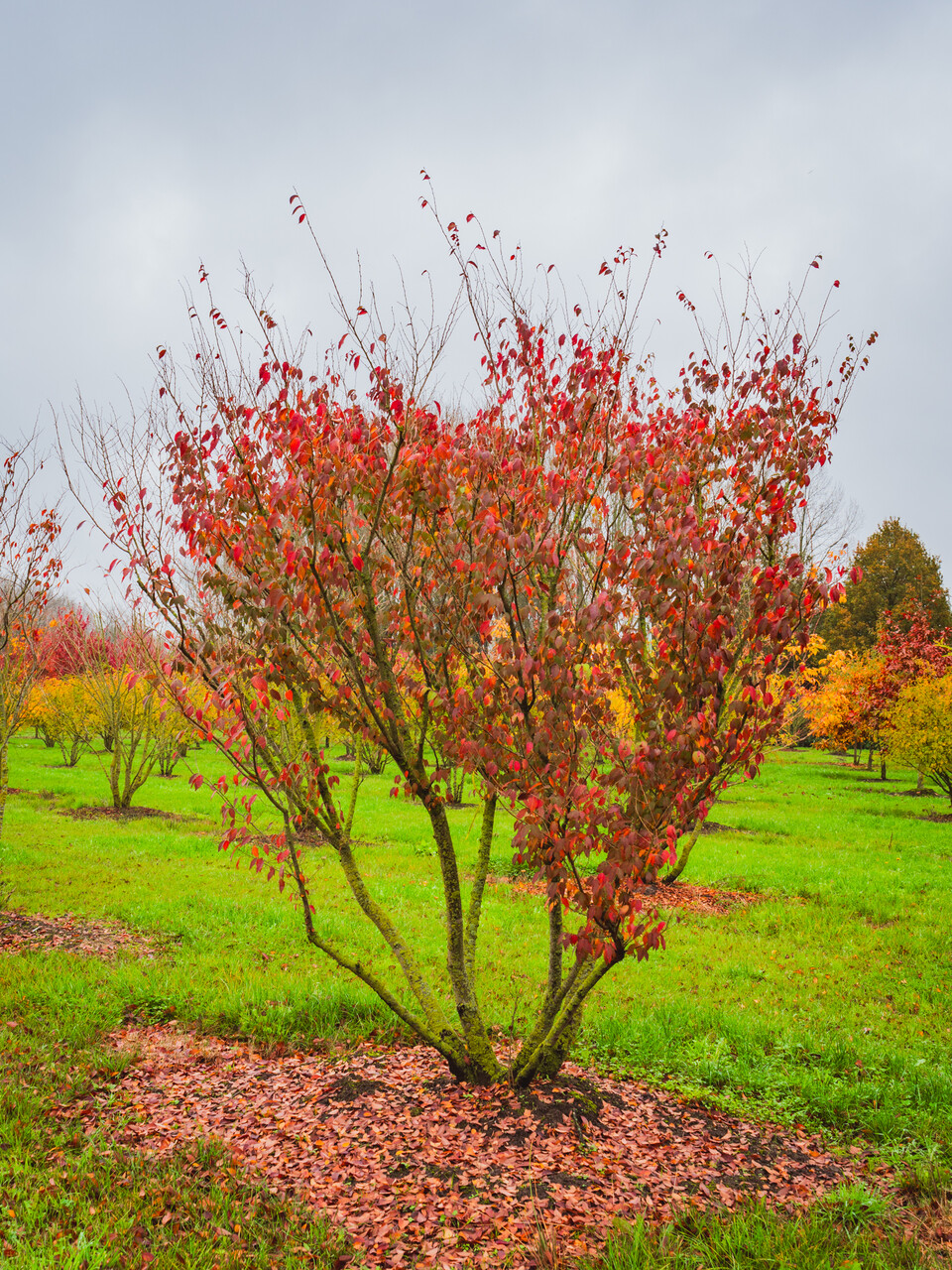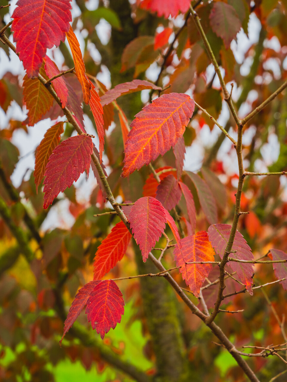 Bladene til Zelkova serrata blir gul, oransje, rød om høsten.