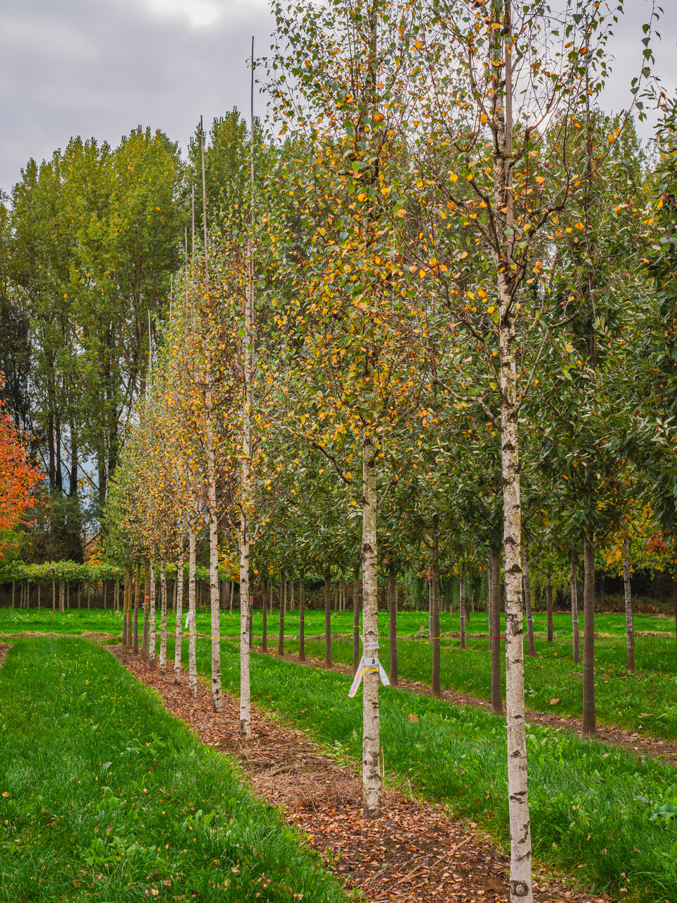 Bladene til Betula pendula 'Zwitsers Glorie' blir gul om høsten.