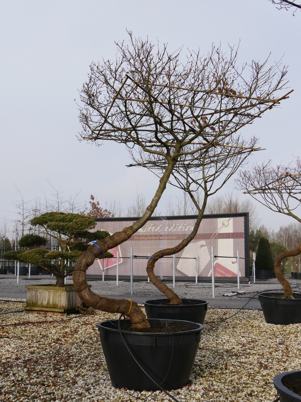 THE SWING-trærne er taktrær med en karakteristisk pendel i stammen. Ideen til disse trærne oppsto ut fra behovet for et grønt tak over terrassen, uten at en stamme i midten skulle være til hinder. Dette er praktisk, men også bedre for treet, fordi trær helst ikke vil stå i asfaltering. I en kant får røttene bedre tilgang til vann og luft, og de vil ikke presse opp belegningen. Så det er en vinn-vinn-situasjon og dessuten et skikkelig blikkfang i hagen. Effekten av den S-formede stammen gir enhver terrasse eller hage en leken, men moderne karakter.
