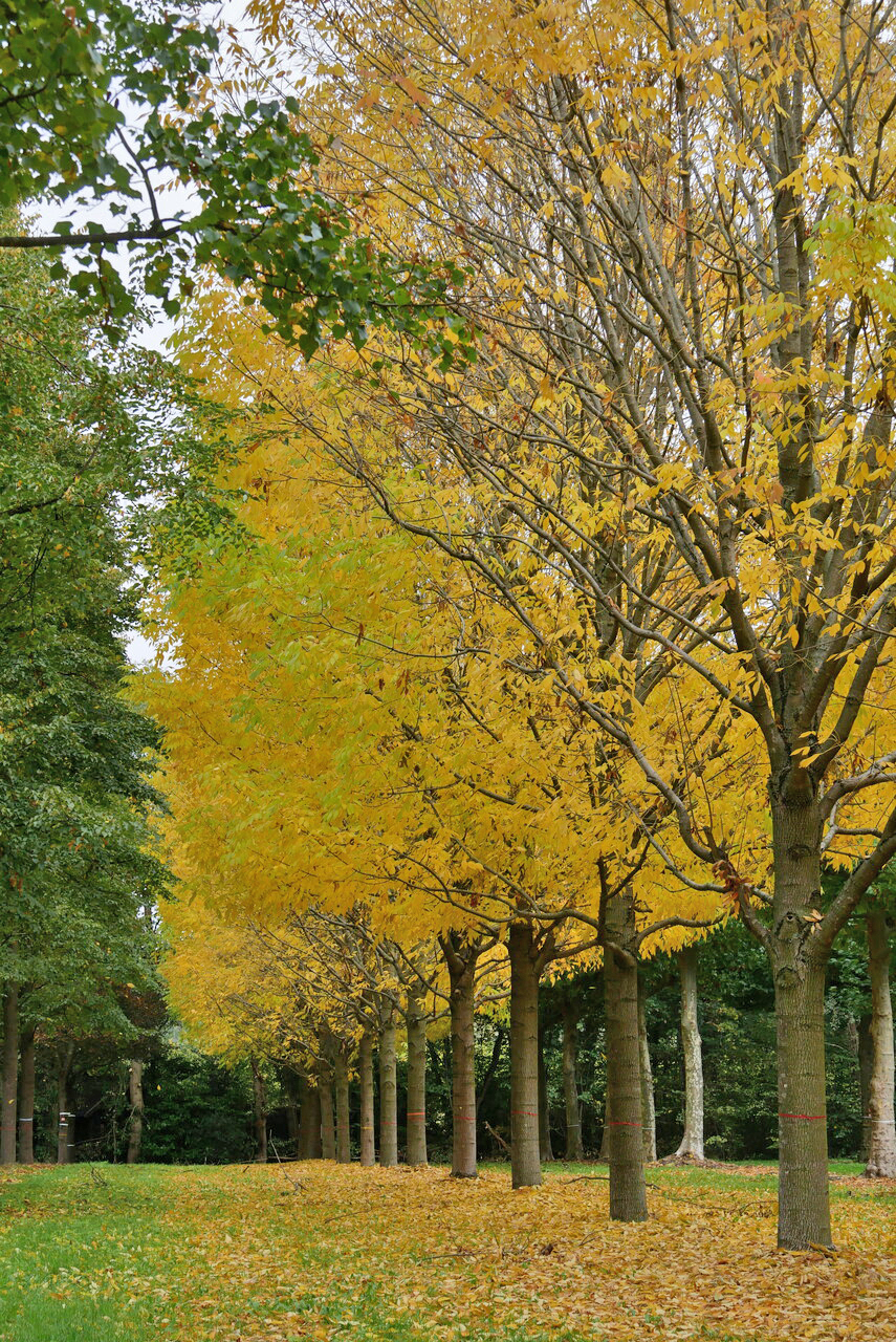 Bladene til Fraxinus americana 'Skyline' blir oransje, rød om høsten.