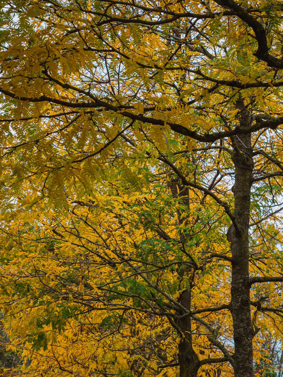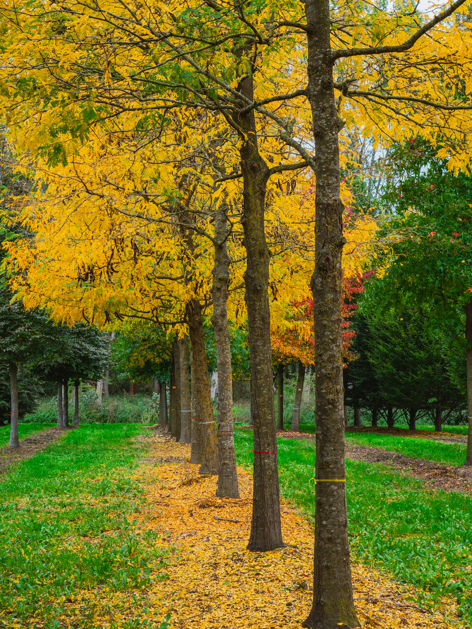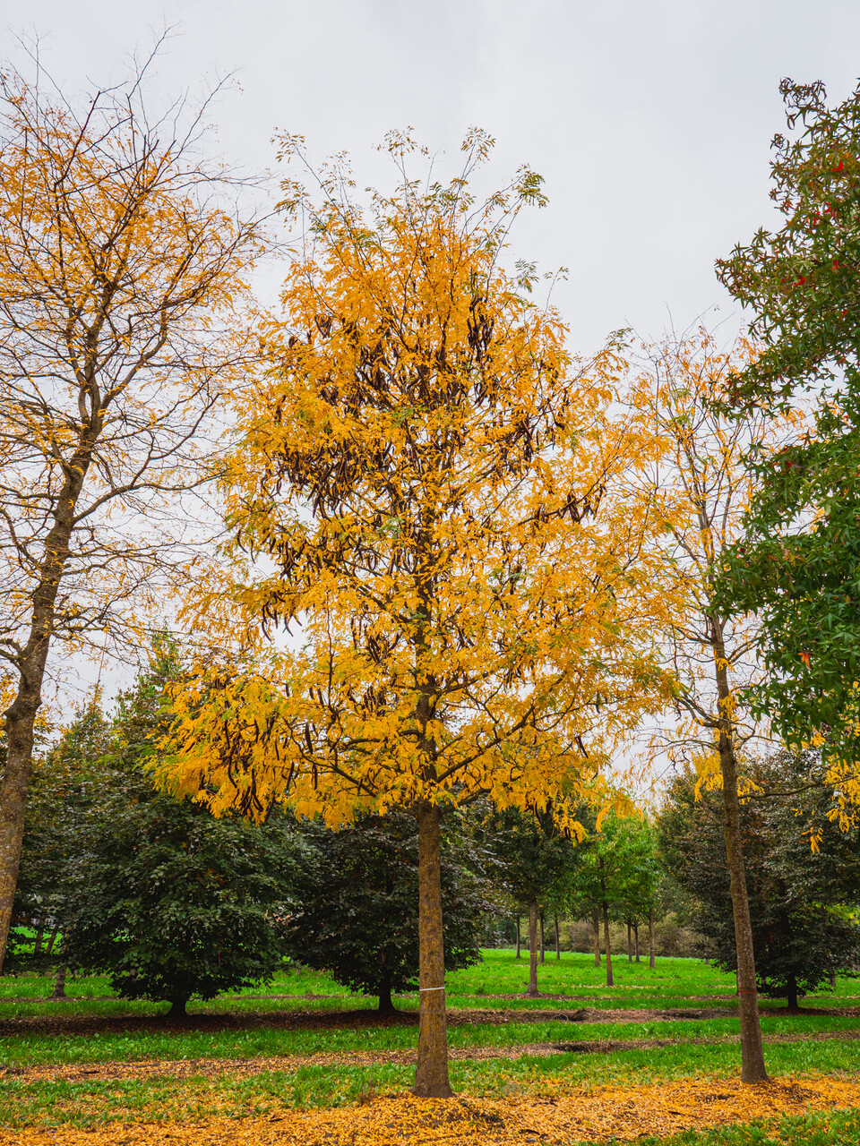 Bladene til Gleditsia triacanthos f. inermis blir gul om høsten.