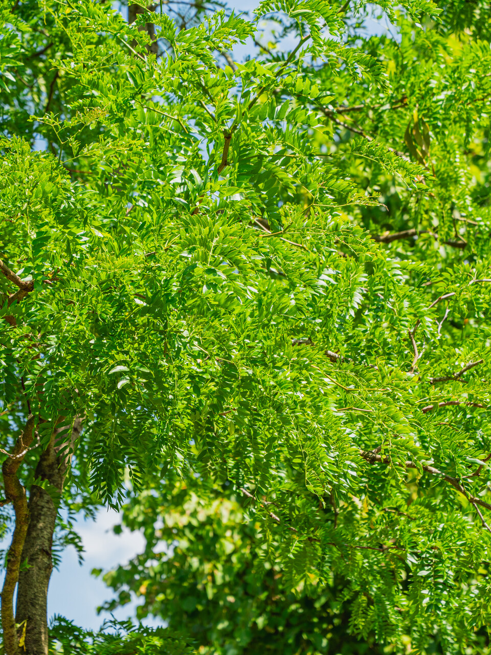 pinnate or bipinnate, glossy fresh green, feathered leaf