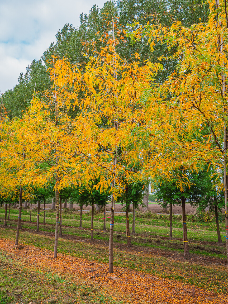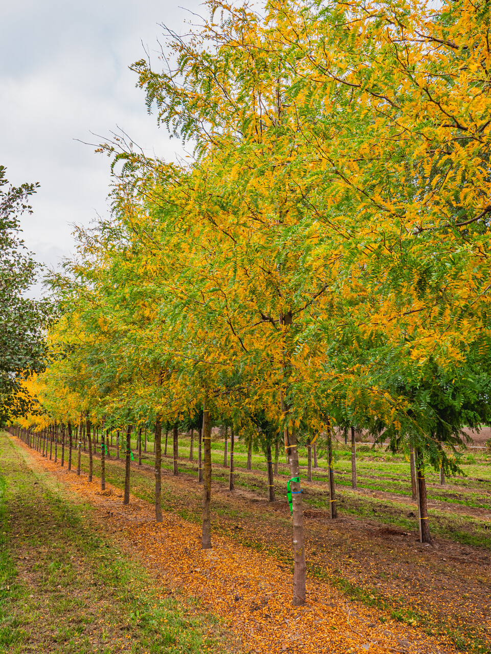 Bladene til Gleditsia triacanthos 'Sunburst' blir gul om høsten.