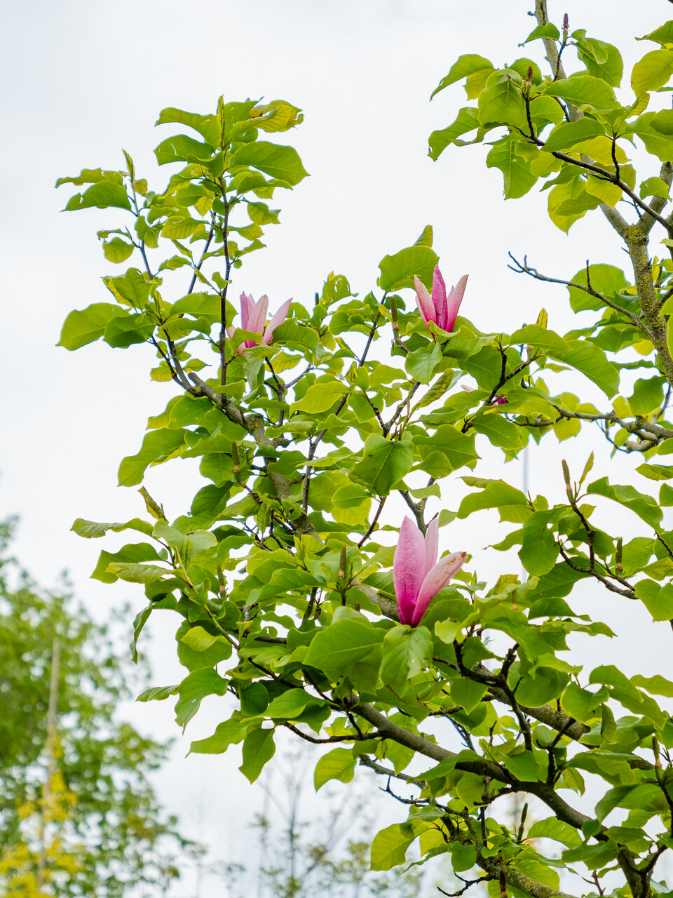 Mellomstort tre med en regelmessig oval krone og en gjennomgående hjertegren. Senere blir kronen nesten rund ved en høyde på ca. 9 m. Blomsterknoppene dannes ikke før om våren og kan dermed ikke fryse om vinteren. De store blomstene åpner seg rundt slutten av april. Blomsterknoppene er dypt rødlilla. De åpnede blomstene er dyp rosa-lilla på utsiden og tydelig lysere på innsiden. De forblir lenge smalt tulipanformede, men åpner seg etter hvert bredt tallerkenformede. Et godt tre til bruk i hager og på torg, også på grunn av de sterke blomsterfargene og den rike blomstringen.