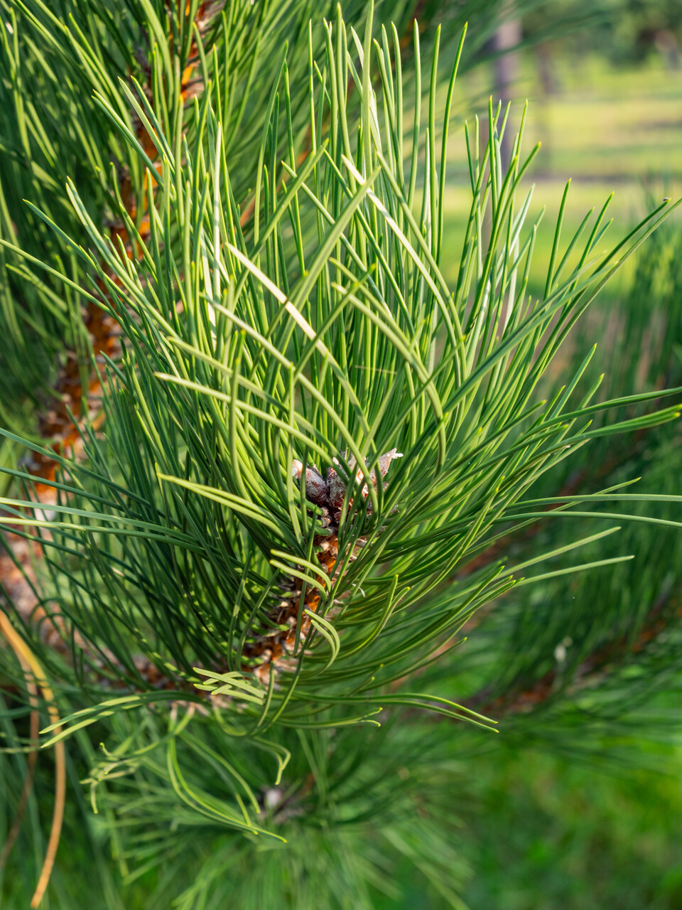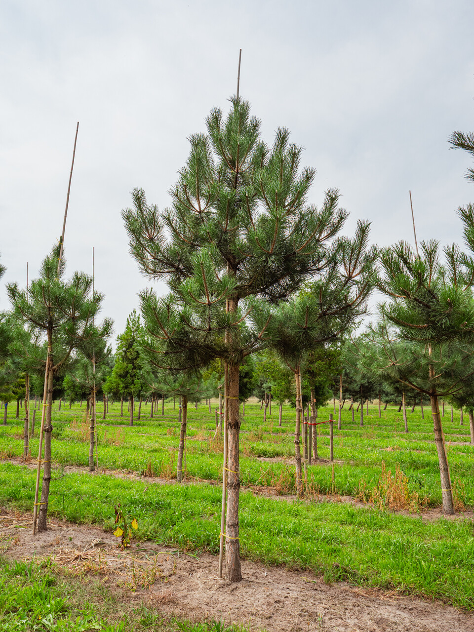 Danner et meget stort og imponerende tre med en karakteristisk bark. Kan brukes som et lavgrenet eller et kronet tre. Hvis det er frittstående, forblir grenene fulle til basen. I ungdommen vokser det pyramideformet, men i alderdommen blir det bredere, skjermformet til rundt. Den svartgrå barken er dypt rillet og spesielt dekorativ på gamle trær. Grenene er nakne og gulbrune. Nålene sitter i bunter på to sammen og er påfallende mørkegrønne, stive og litt stikkende. De nesten symmetriske kjeglene er lysebrune og henger vanligvis parvis eller alene. Tomme kongler faller av om våren. Egnet for mange jordtyper Vokser på tørr kalkholdig jord. Tåler formklipping godt, noe som gjør den egnet for mindre steder. Er motstandsdyktig mot sjøvind og svært motstandsdyktig mot luftforurensning.