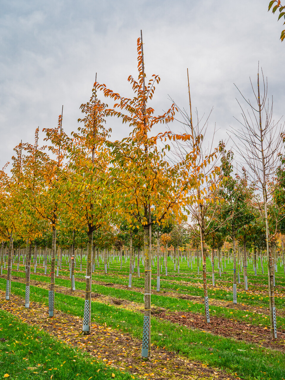 Bladene til Prunus 'Accolade' blir gul, oransje, rød om høsten.