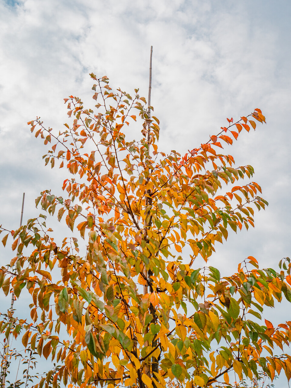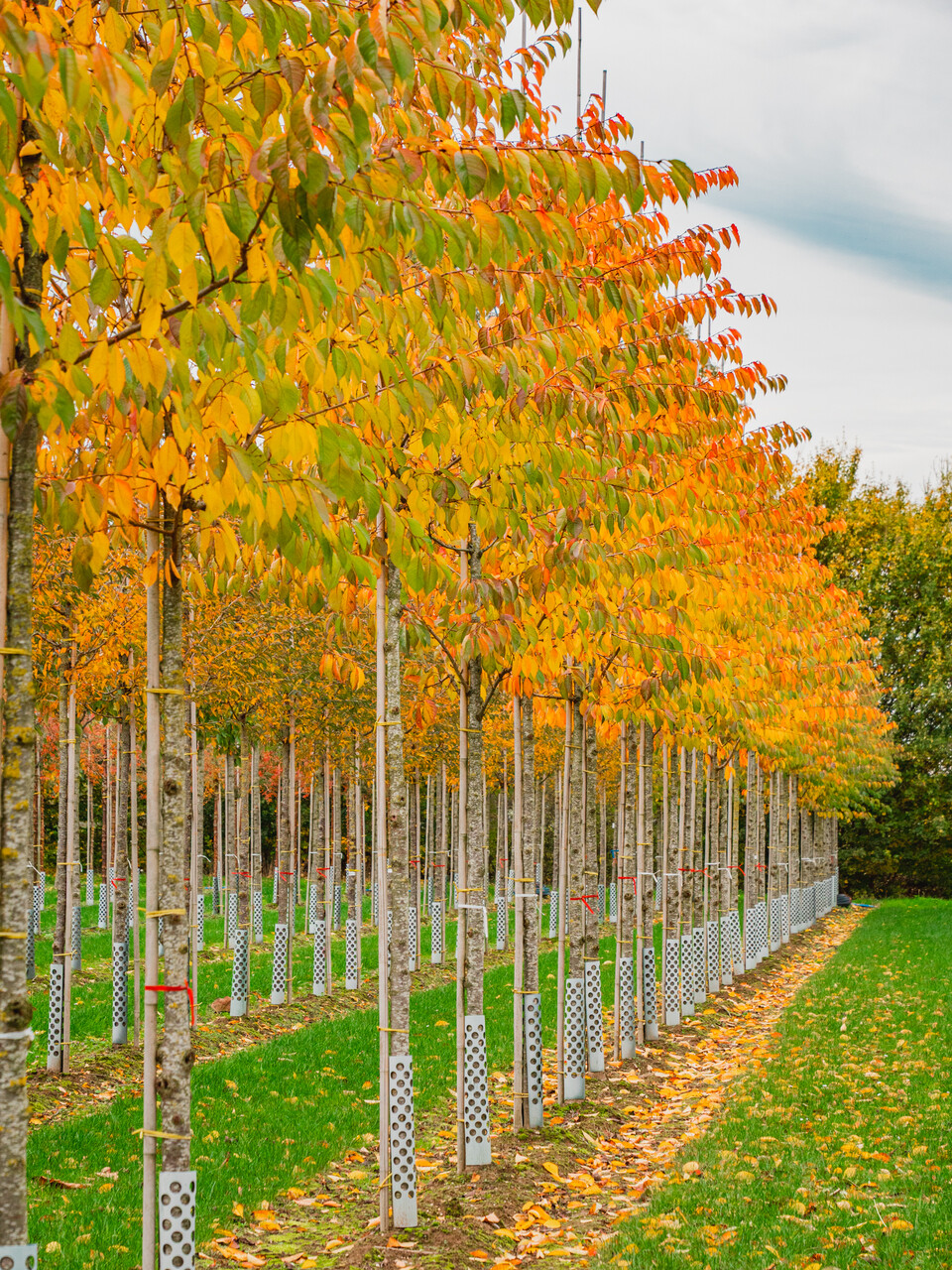 Bladene til Prunus ×yedoensis blir gul om høsten.