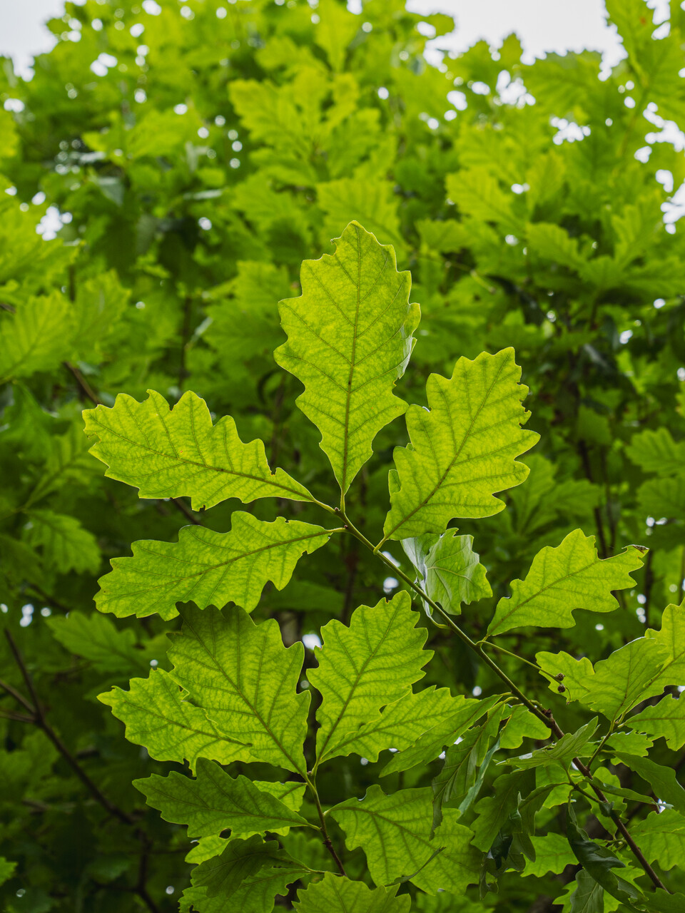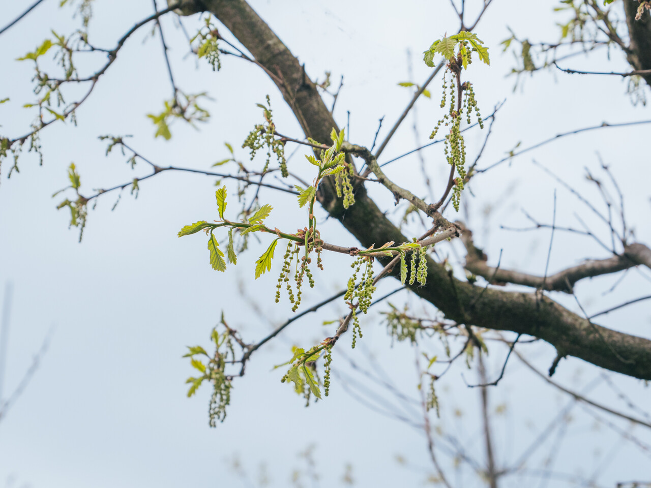 Quercus ×macdanielii HERITAGE ('Clemons') blomstrer i mai.