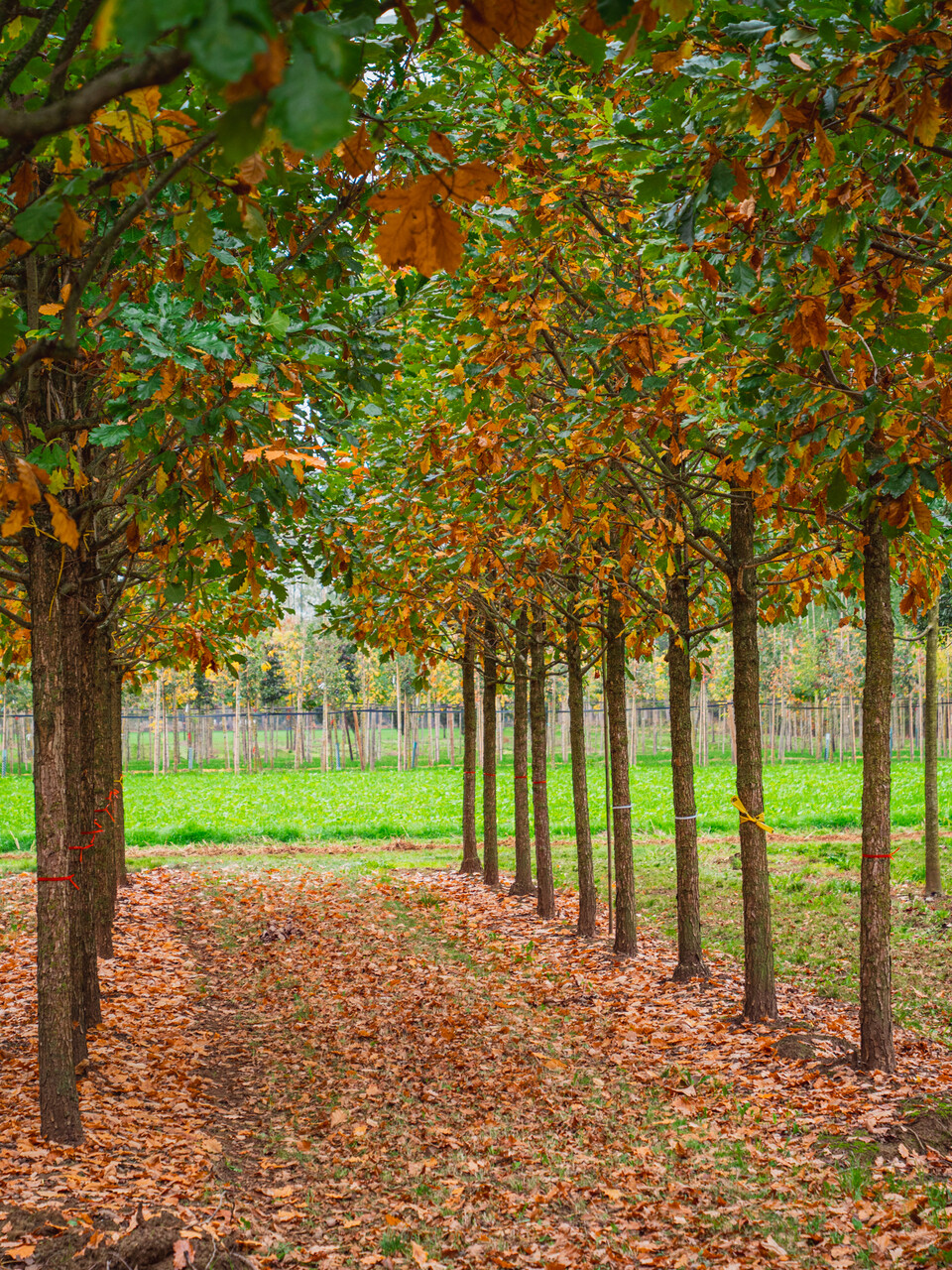 Bladene til Quercus ×macdanielii HERITAGE ('Clemons') blir gul om høsten.