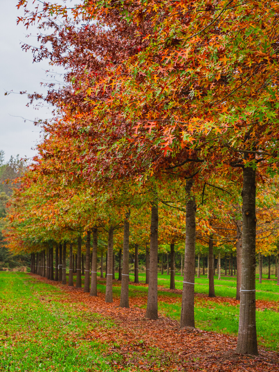 Bladene til Quercus palustris blir rød om høsten.