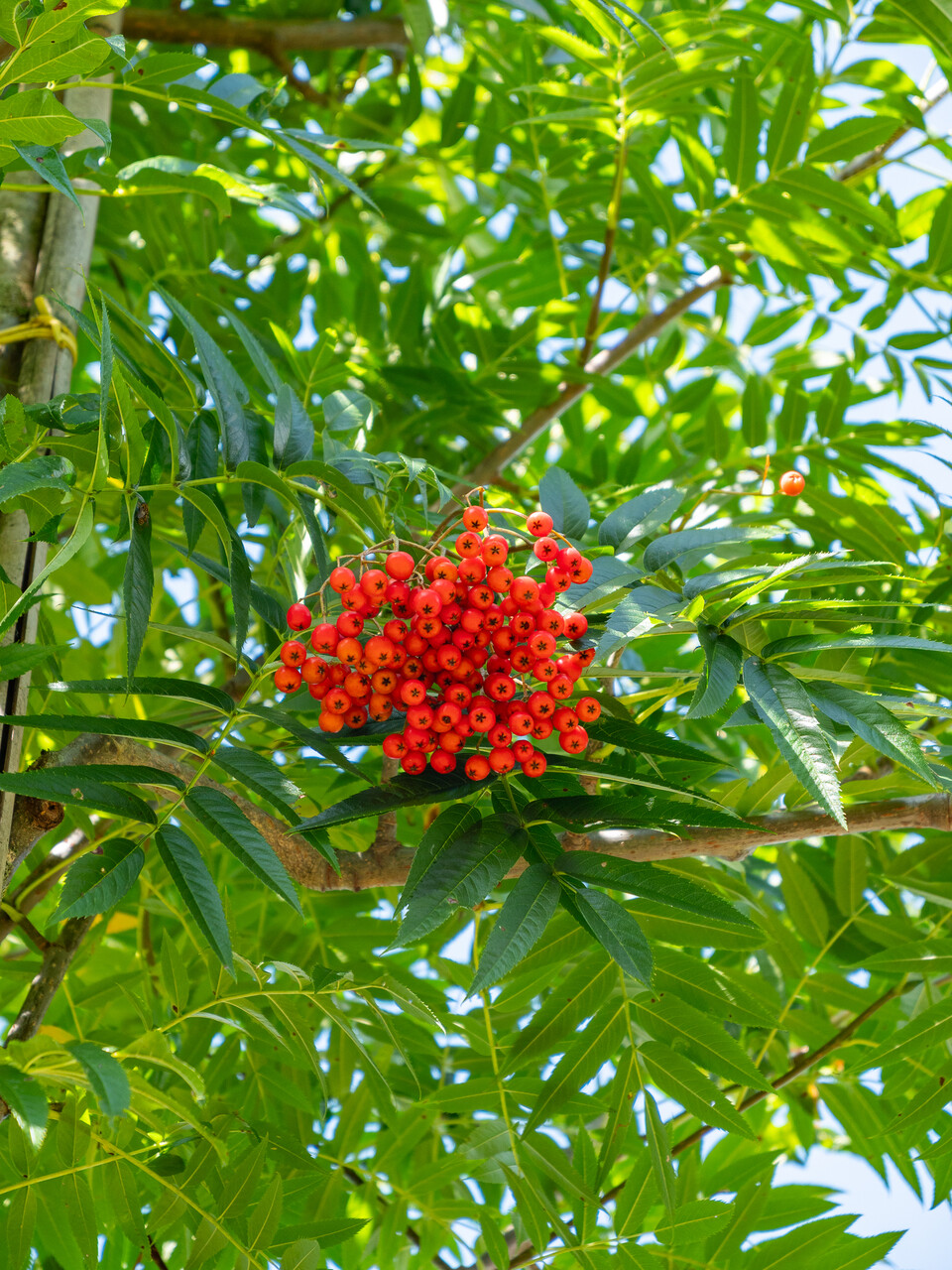 Bladene til Sorbus 'Dodong' blir oransje, rød om høsten.