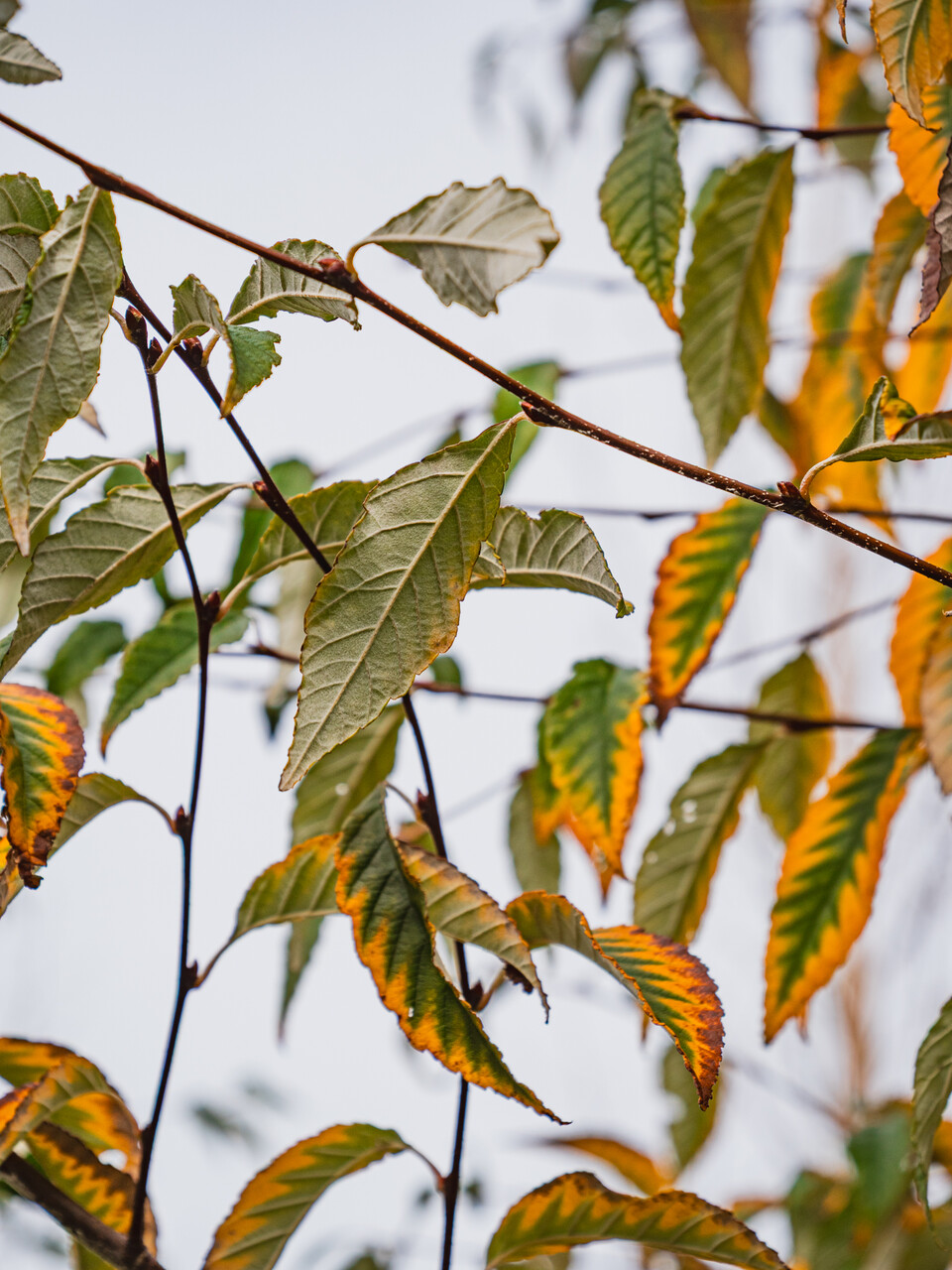 Bladene til Sorbus folgneri 'Emiel' blir oransje, rød om høsten.