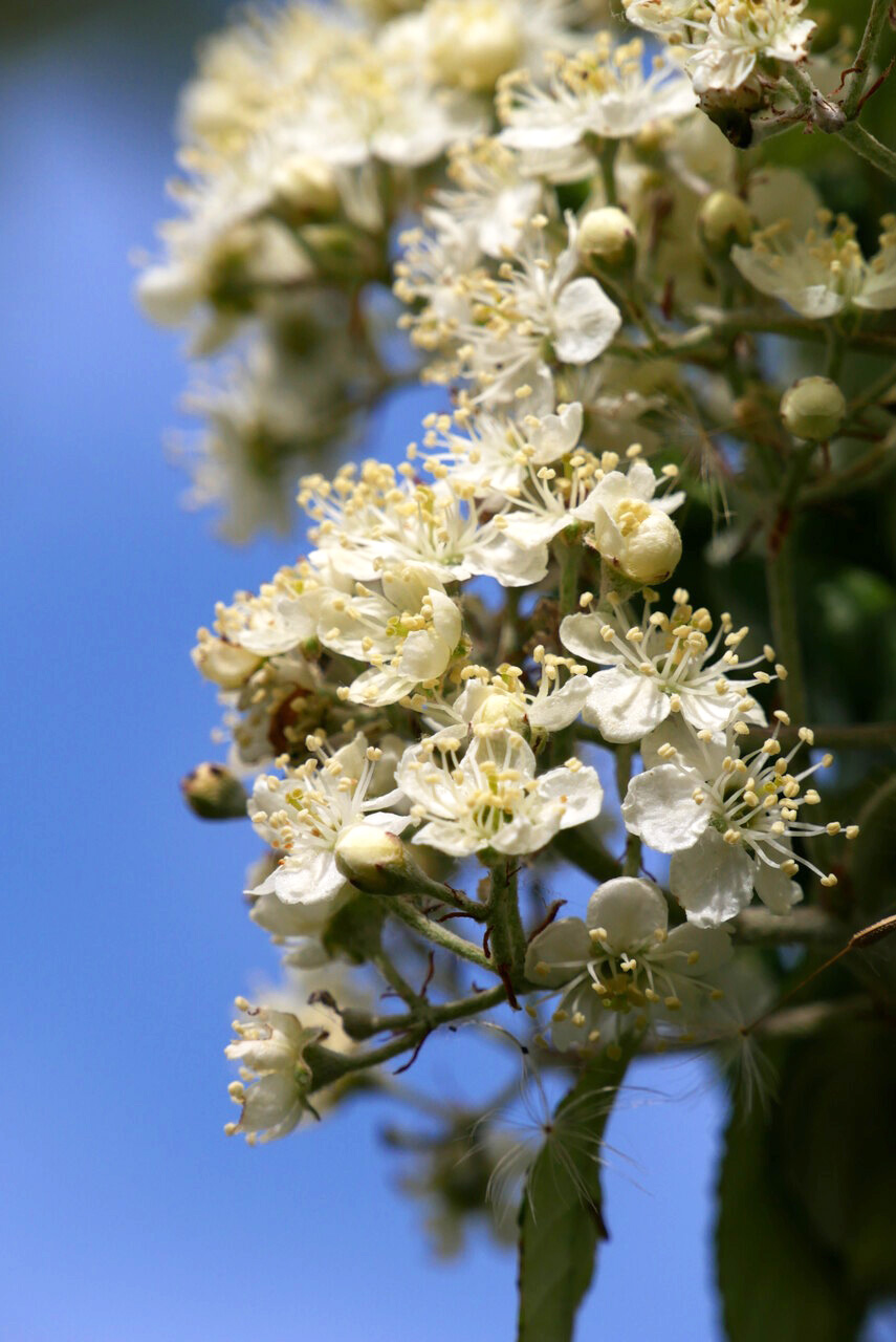 white. Ø approx. 1 cm, in approx. 10 cm-wide corymbs, May