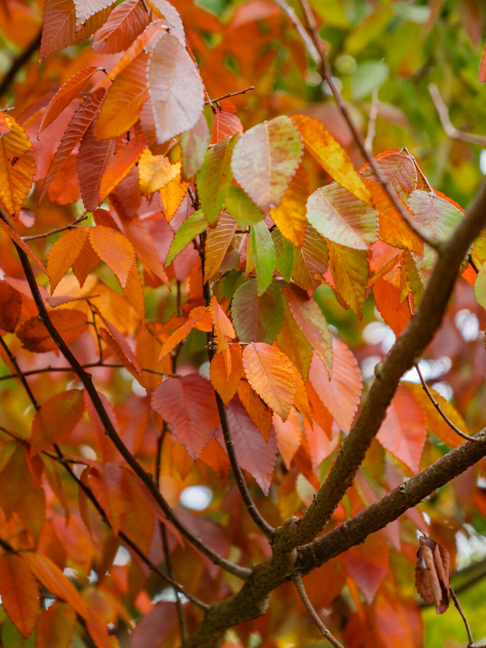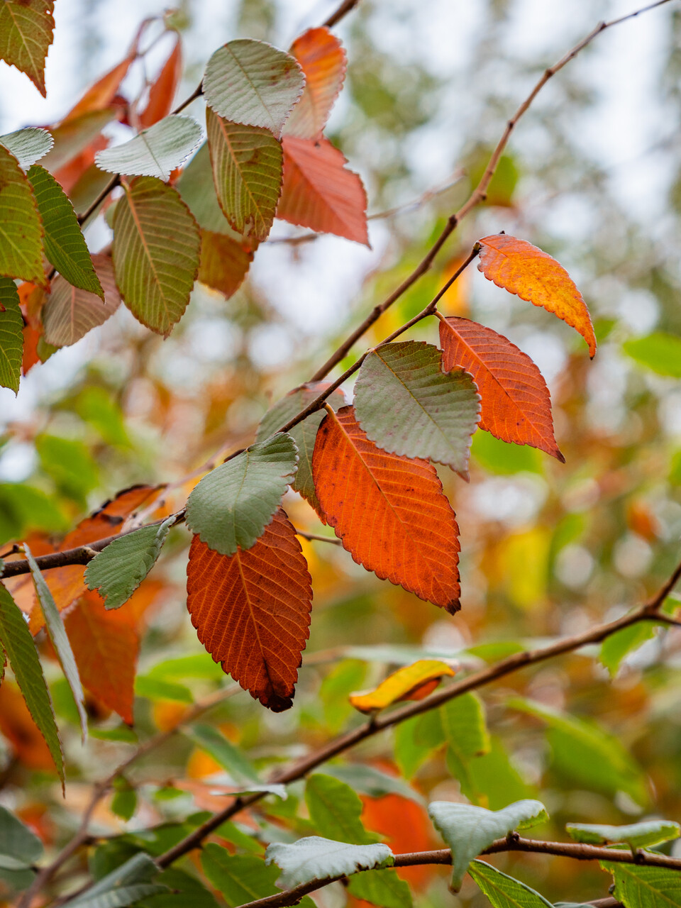 Bladene til Zelkova schneideriana blir rød om høsten.